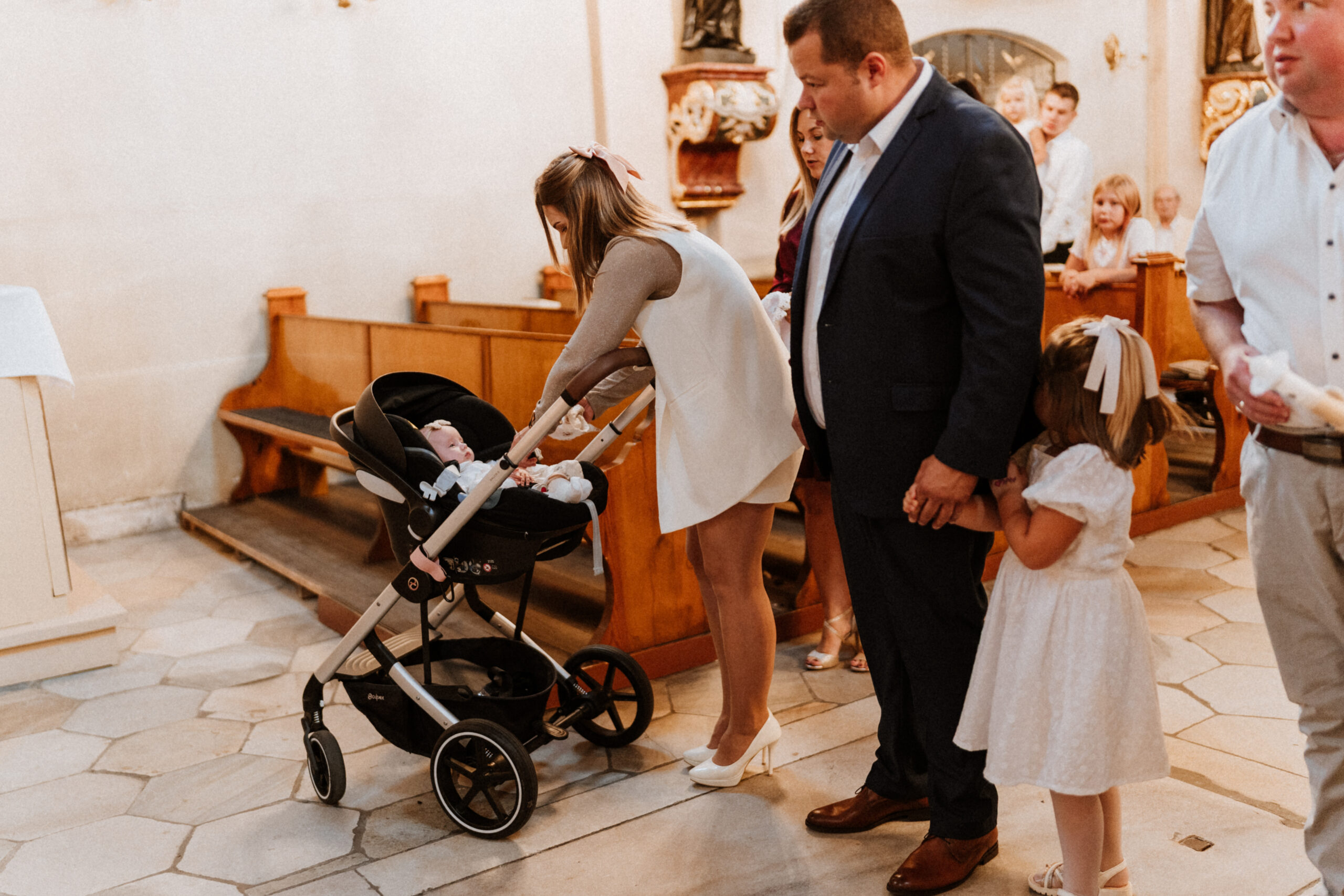 Zaczyna się spokojnie, jeszcze w domu. Mama dopina ostatni guziczek sukienki, tata próbuje zawiązać muszkę, a w powietrzu czuć ciepłe podekscytowanie. Maluszek patrzy na to wszystko z ciekawością – jeszcze nieświadomy, że właśnie zaczyna się jego wielki dzień. Te chwile – przygotowania, gesty, spojrzenia, delikatne dłonie poprawiające ubranko – to magia, która znika szybciej, niż zdążymy ją zauważyć. A przecież to właśnie w nich kryje się prawdziwa historia.