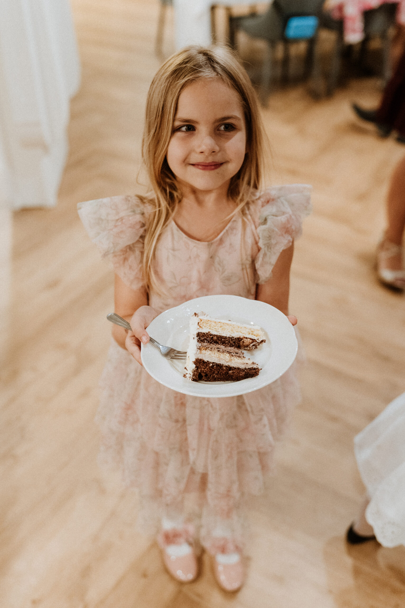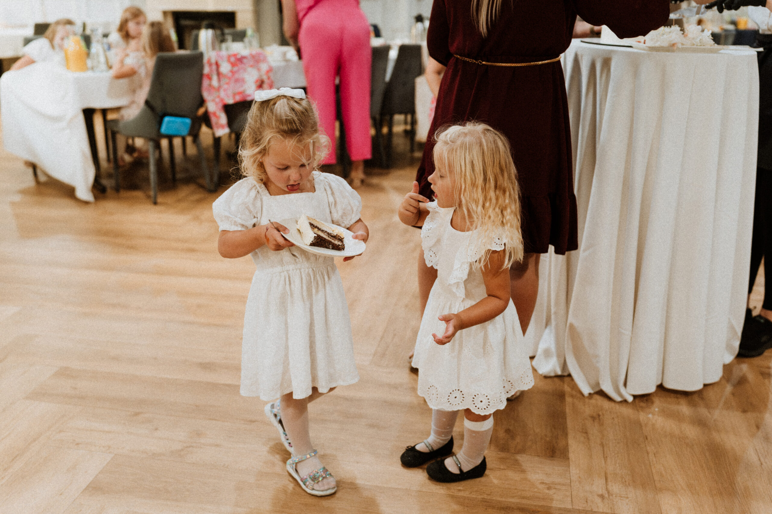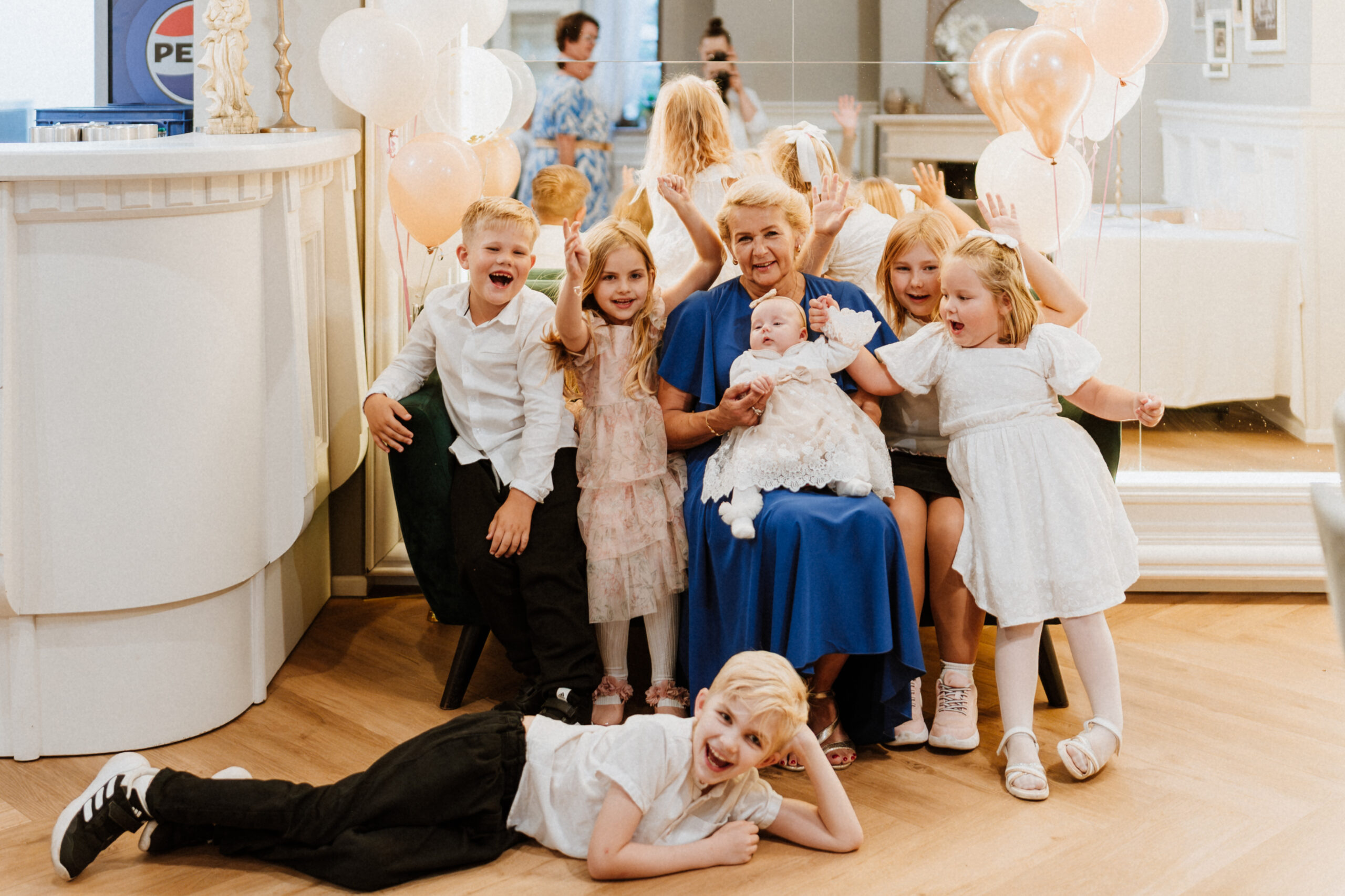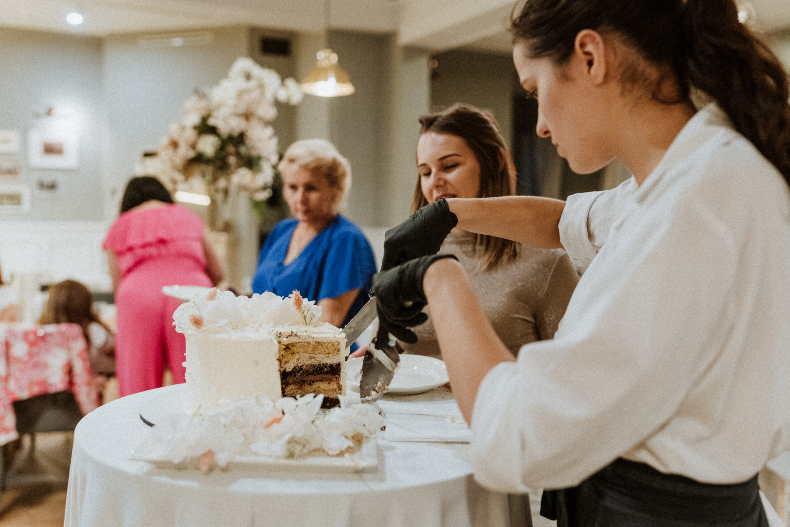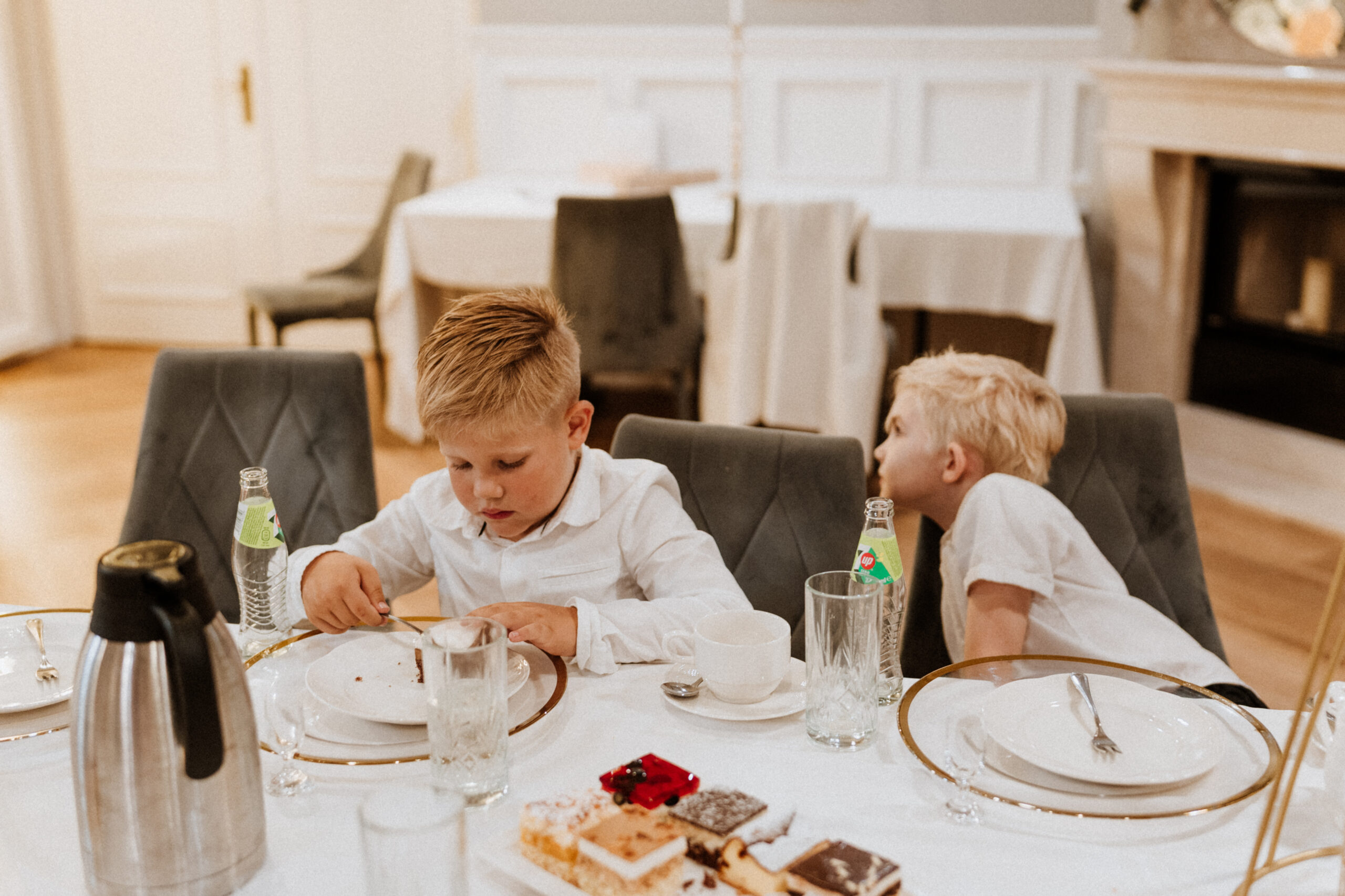 Po uroczystości – już mniej oficjalnie. Śmiech przy stole, dzieci biegające wokół, ciasta, które znikają szybciej niż można zrobić zdjęcie, babcia tuląca wnuczka i dziadek, który po raz kolejny powtarza, że „to szczęście mieć taką rodzinę”.