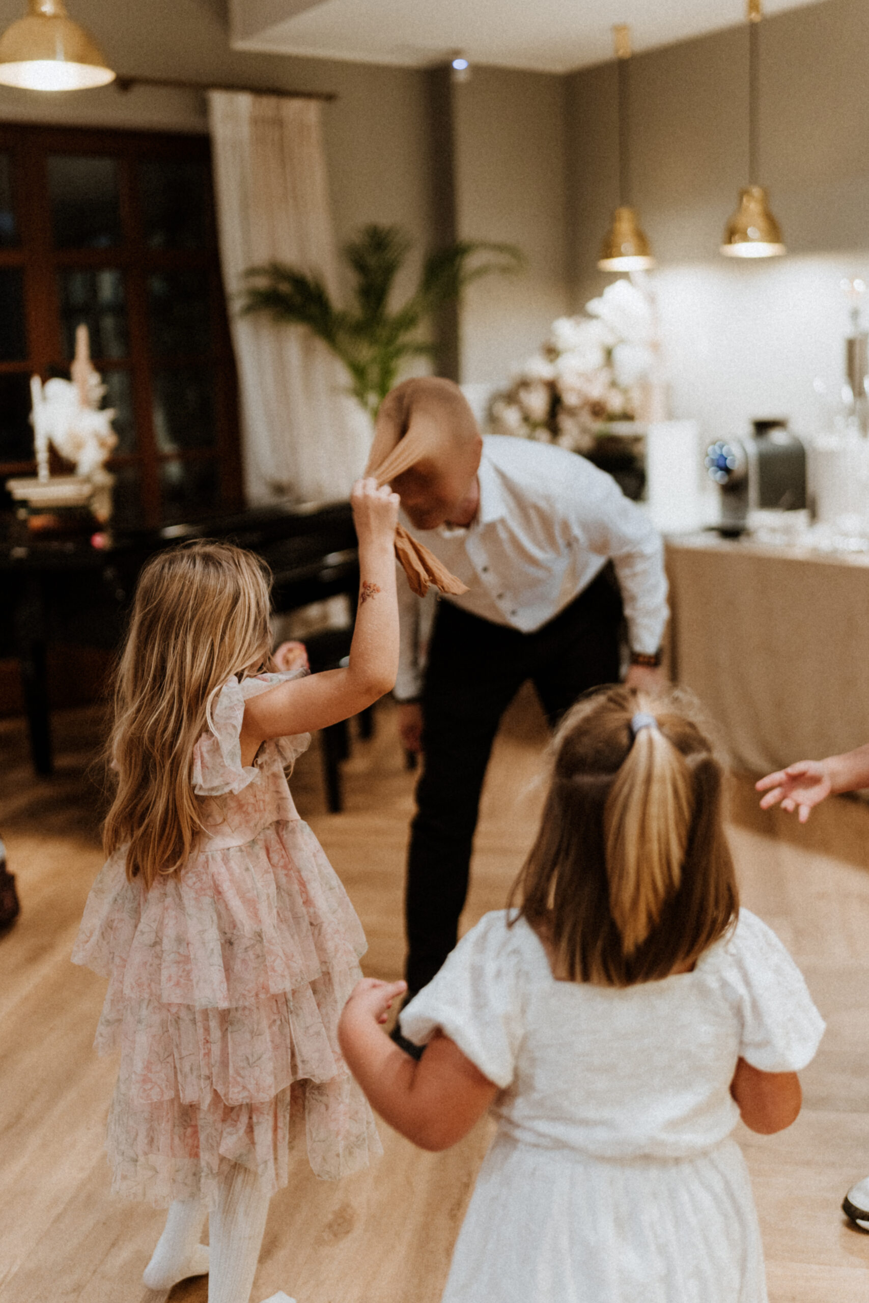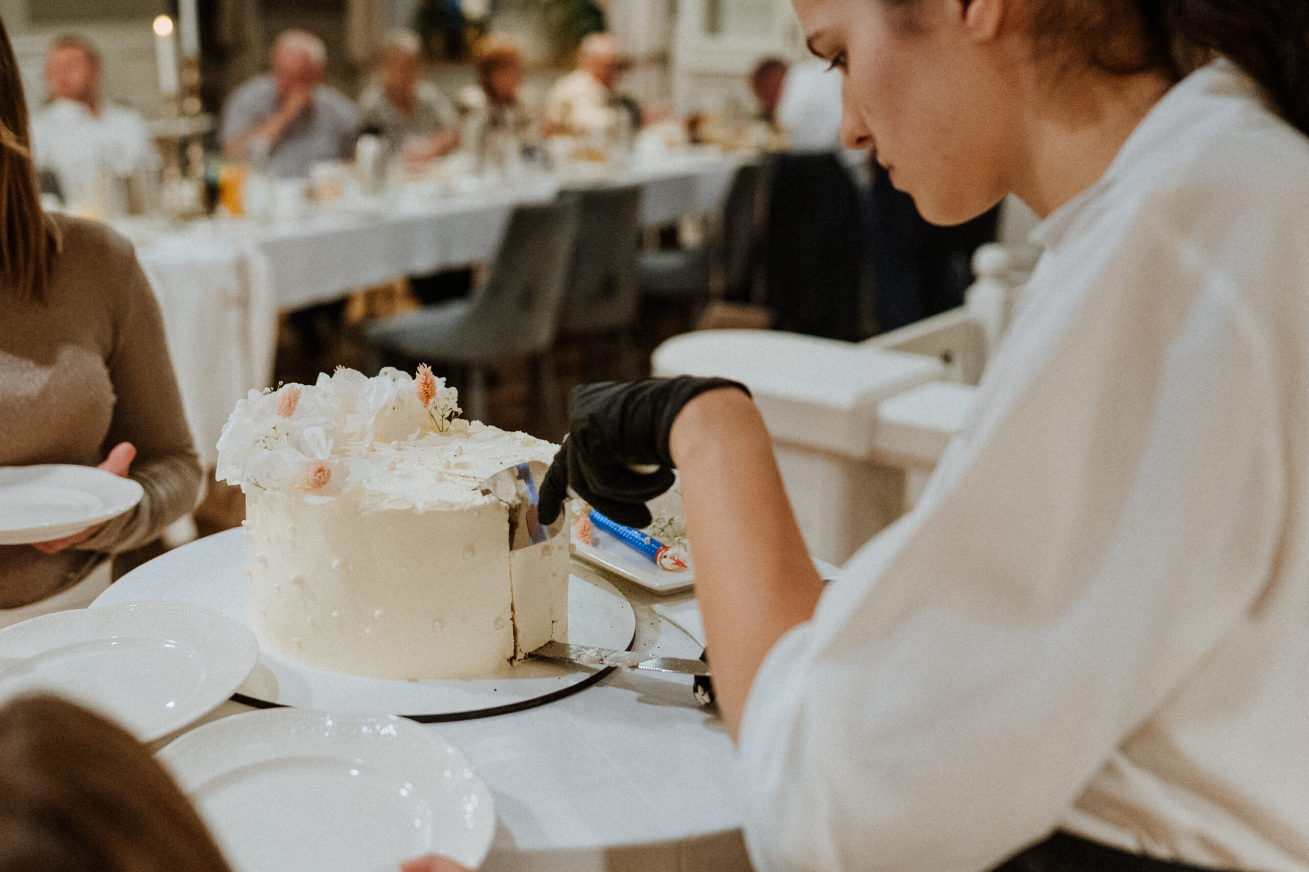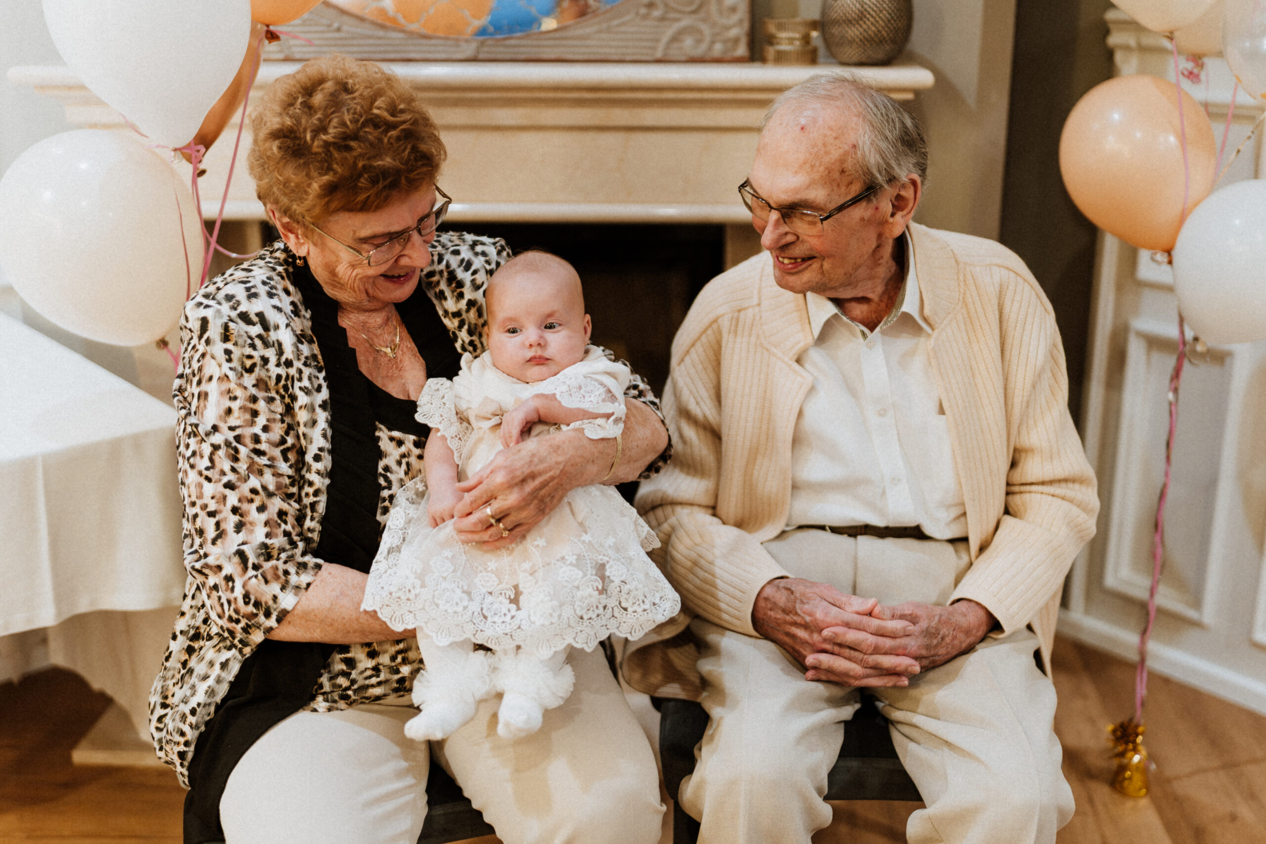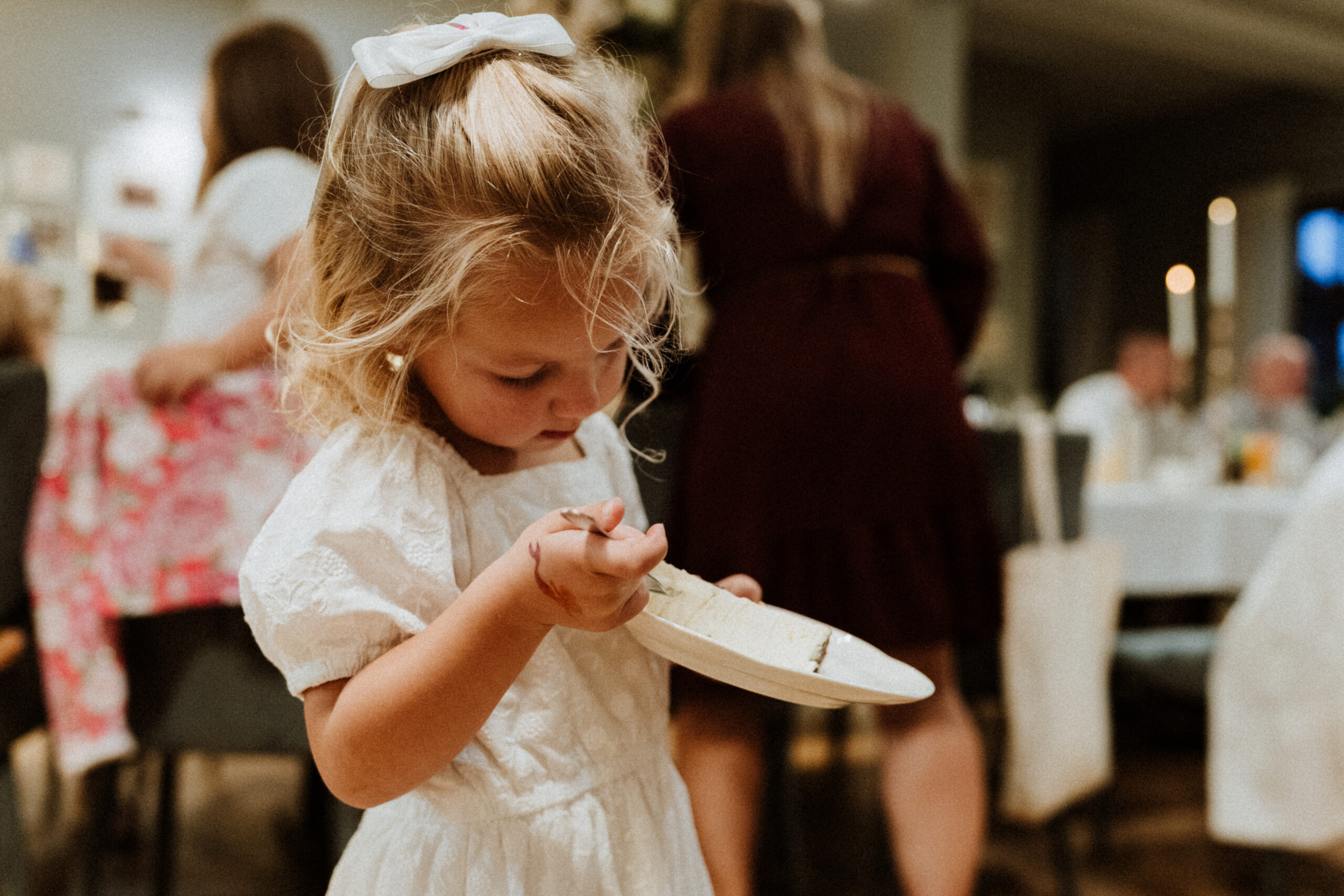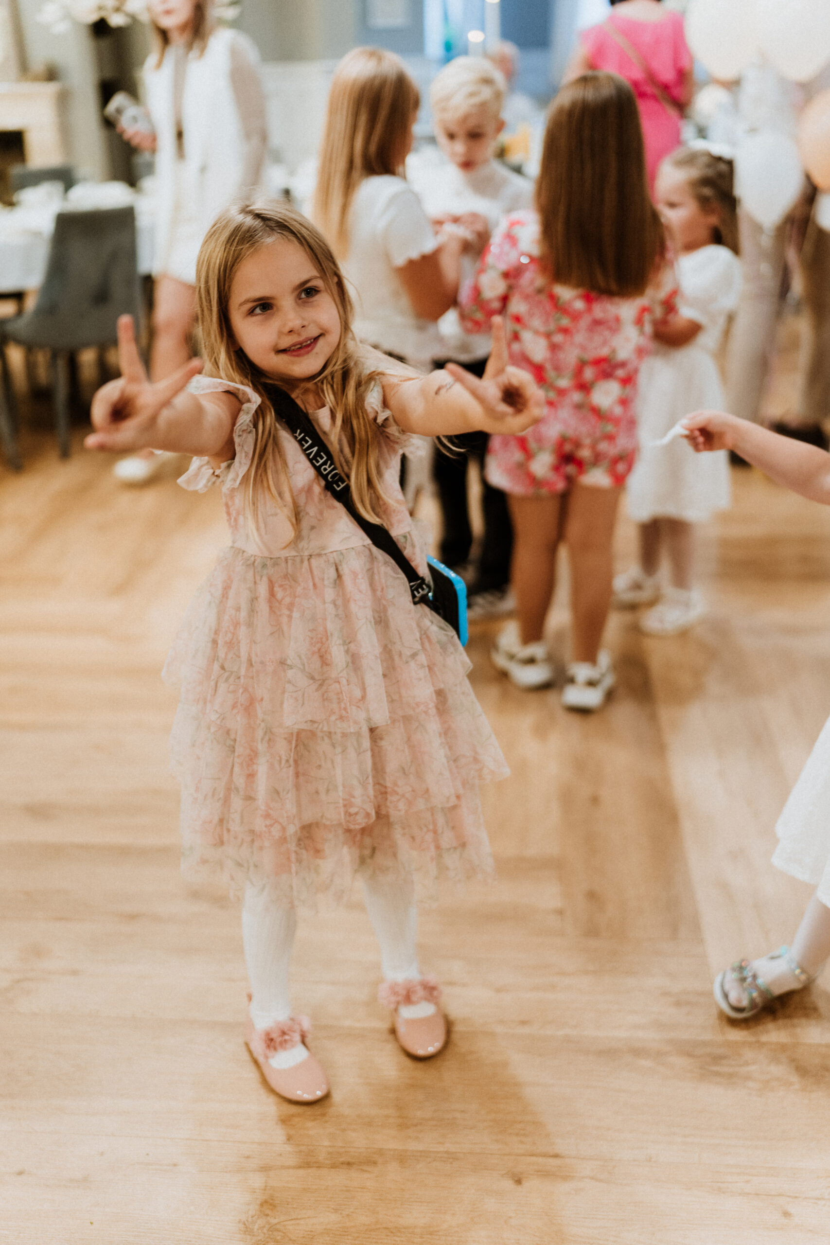 Po uroczystości – już mniej oficjalnie. Śmiech przy stole, dzieci biegające wokół, ciasta, które znikają szybciej niż można zrobić zdjęcie, babcia tuląca wnuczka i dziadek, który po raz kolejny powtarza, że „to szczęście mieć taką rodzinę”.